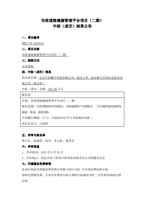 市政道路健康管理平臺項目(二期)中標(成交)結果公告
