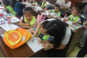 課堂中,小朋友們獲得了不少關于橋梁建筑的小知識,利用捐贈的文具畫出他們心目中的大橋。
