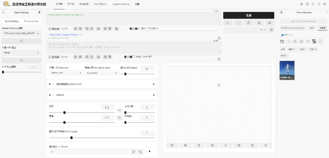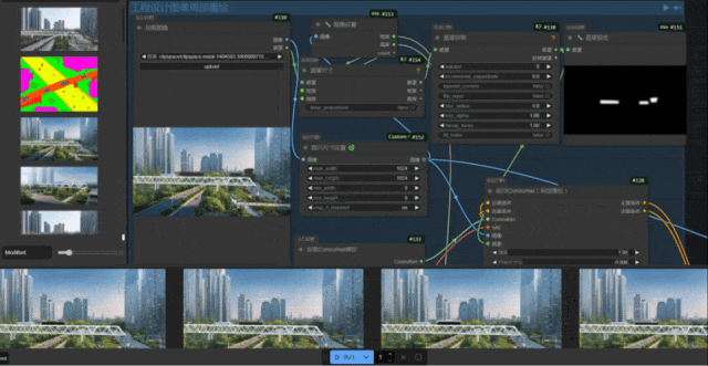 ? ? 武漢市政院在 AIGC 生成效果圖方案領域,通過深度學習算法優(yōu)化與專業(yè)圖像數(shù)據訓練,搭建了市政工程效果圖方案自動化生成平臺1.0版,構建了路橋、建筑等專業(yè)圖像生成大模型的模型庫。平臺通過引入DeepSeek-R1 等前沿大語言模型,借助其強大的深度語義理解機制與多模態(tài)認知能力,可解構模糊設計意圖,自動生成符合工程規(guī)范與藝術審美的精準提示詞,突破傳統(tǒng)人工描述的主觀性與局限性;同時,依托自定義節(jié)點技術,成功開發(fā)并驗證了多套一鍵生成效果圖的高效工作流,為設計團隊提供了豐富的靈感和多元化的選擇。