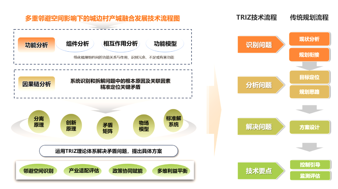 “基于TRIZ創(chuàng)新理論的一種多重鄰避空間影響下的城邊村產城融合發(fā)展規(guī)劃技術”項目基于寧波北侖新碶街道村莊規(guī)劃編制實踐,對城邊村產城融合發(fā)展的深層矛盾進行科學拆解,精準識別出“空間排他、物理割裂、功能受限、發(fā)展制約”四大關鍵矛盾。項目提出的“化鄰避為鄰利”技術方案,有效應對土地供需不平衡、資源保護利用不協調等問題,提出“破解約束、產業(yè)升級、植入IP”的產業(yè)發(fā)展路徑,成功解決多重鄰避空間制約下的規(guī)劃發(fā)展難題,為新碶街道量身擘畫了“碶彩稻田”鄉(xiāng)村振興推進示范區(qū)和“稻田+”都市田園鄉(xiāng)村示范區(qū)的規(guī)劃藍圖。