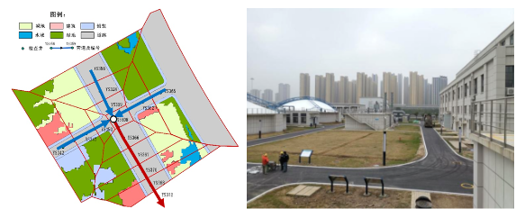 下墊面產流示意圖(左)和黃家湖污水廠應用效果圖(右)
