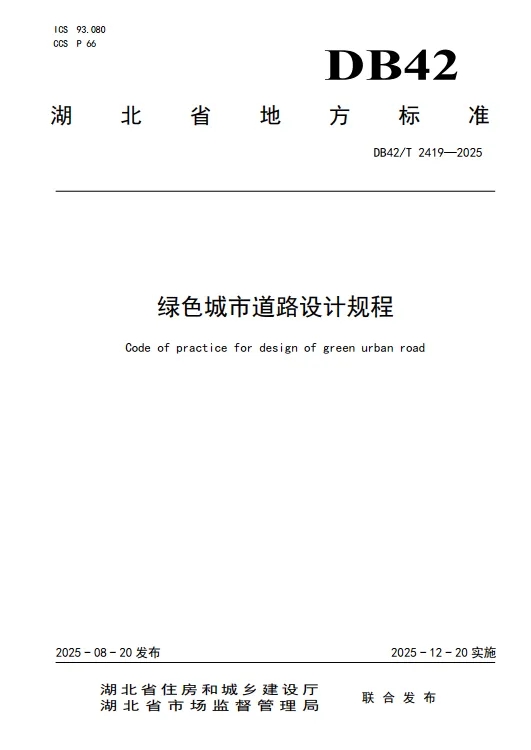 ? ? 近日,由武漢市政院主持編制的湖北省《綠色城市道路設計規(guī)程》(DB42/T 2419-2025)地方標準,經湖北省住房和城鄉(xiāng)建設廳、湖北省市場監(jiān)督管理局聯(lián)合批準發(fā)布,將于2025年12月20日起正式實施。該標準是公司聯(lián)合行業(yè)多家單位,歷時三年深入調研國內典型城市綠色道路建設實踐,系統(tǒng)總結湖北省實踐經驗的重要成果。