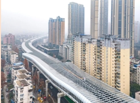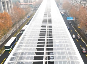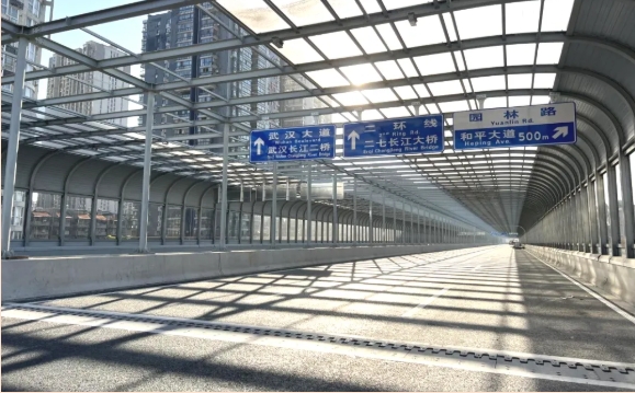 ? ? 項目設計團隊始終秉持 “輕量化、智能化、綠色化” 理念,多項技術應用填補區(qū)域空白,樹立行業(yè)新標桿。在鋪裝材料與工藝上,主線高架鋼箱梁橋面采用澆注式瀝青鋪裝,相比傳統(tǒng)方案減重16%,既降低橋梁結構負荷、提升安全性,又縮短施工周期;鋼箱梁采用U肋全熔透智能焊接,大幅提高結構疲勞壽命,積極推進鋼箱梁U肋焊接工藝的發(fā)展。尤為引人注目的是,本項目集中展現(xiàn)了三大創(chuàng)新亮點:它擁有全國最長的連續(xù)全封閉聲屏障,是湖北省首例“光伏+市政”的融合實踐,更在武漢率先實現(xiàn)了聲屏障光伏發(fā)電的應用,為綠色市政建設樹立了新的樣板。