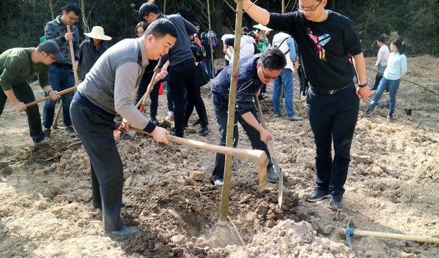 蔡輝為活動致辭,他肯定了此次植樹拓展活動的重要意義,希望大家在工作生活之余不要忘記承擔社會責任,并勉勵大家要在公司轉型發(fā)展時期展現出更加飽滿和積極向上的精神面貌。隨后,志愿者們拿起鋤頭、鐵鍬、水桶,在工作人員的指導下挖坑、植樹、培土、澆水、固定,將一棵棵樹苗植入土里。大家熱情高漲,你挖我栽,互相配合,30余棵樹苗已經栽種完畢。大家合力豎立起“武漢市政工程設計院愛綠護綠植樹林”標識牌,并與之合影留念。
