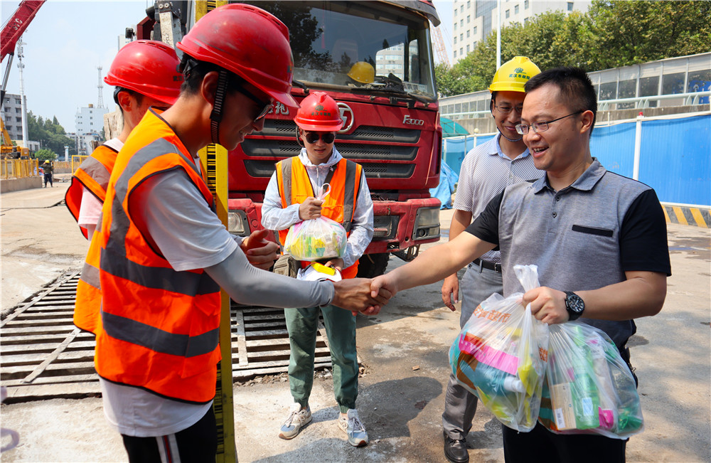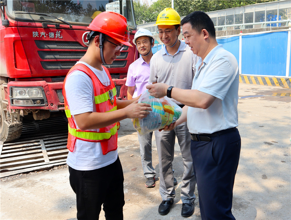 連續(xù)多日的高溫籠罩著武漢大地,然而公司勘測(cè)、監(jiān)理、檢測(cè)、項(xiàng)目管理等專業(yè)員工依然頂高溫冒酷暑,堅(jiān)守在工程建設(shè)最前線。8月6日上午,公司黨委書(shū)記蔡輝、副總經(jīng)理陳建斌帶領(lǐng)相關(guān)部門(mén)工作人員前往大東湖傳輸系統(tǒng)項(xiàng)目、武漢市軌道交通5號(hào)線工程、黃家湖綜合整治工程所在地,親切慰問(wèn)奮戰(zhàn)在一線的員工,在炎熱的酷夏中為他們送去一份清涼。