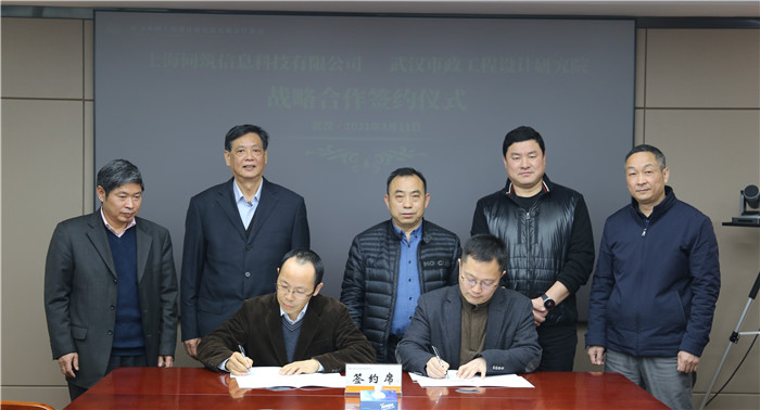 2021年3月11日上午,武漢市政設(shè)計院與上海同筑信息科技有限公司在漢簽署戰(zhàn)略合作協(xié)議,將雙方數(shù)字化合作進(jìn)一步推向深入。武漢市政設(shè)計院總經(jīng)理姚華、副總經(jīng)理陳建斌,上海同筑信息科技有限公司董事長尹仕友、副總經(jīng)理劉建成及雙方相關(guān)人員出席簽約儀式。