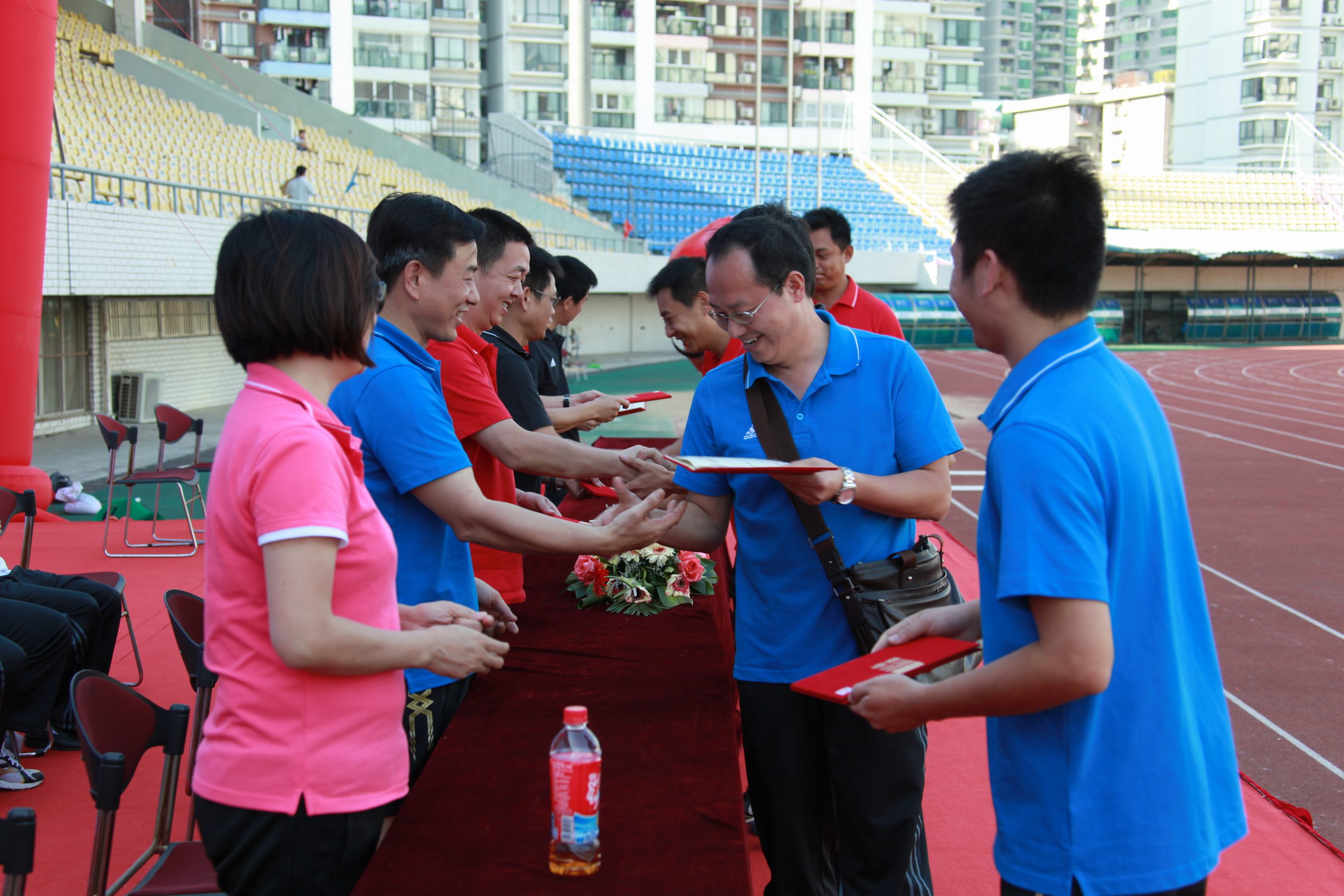 ??? 在閉幕式上舉行了隆重的頒獎(jiǎng)儀式,三十六名在比賽中發(fā)揮出色的運(yùn)動(dòng)員走到臺(tái)上,從公司領(lǐng)導(dǎo)手中接過榮譽(yù)證書,并接受了全場觀眾送出的熱烈的掌聲與歡呼聲。