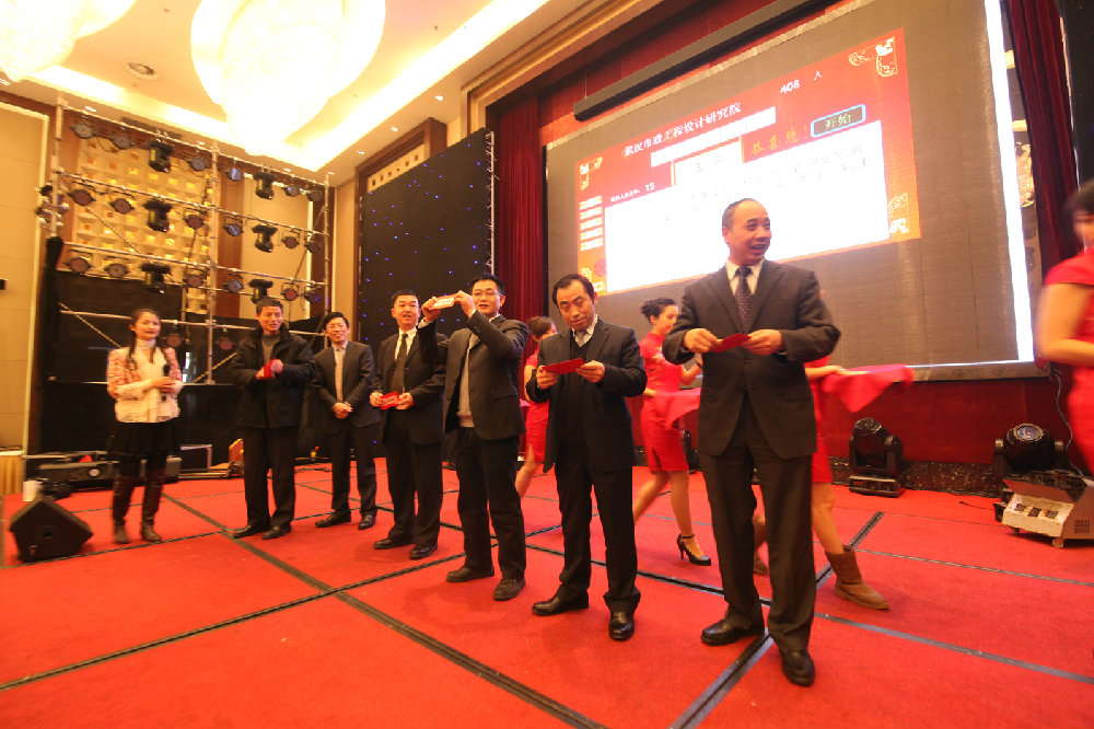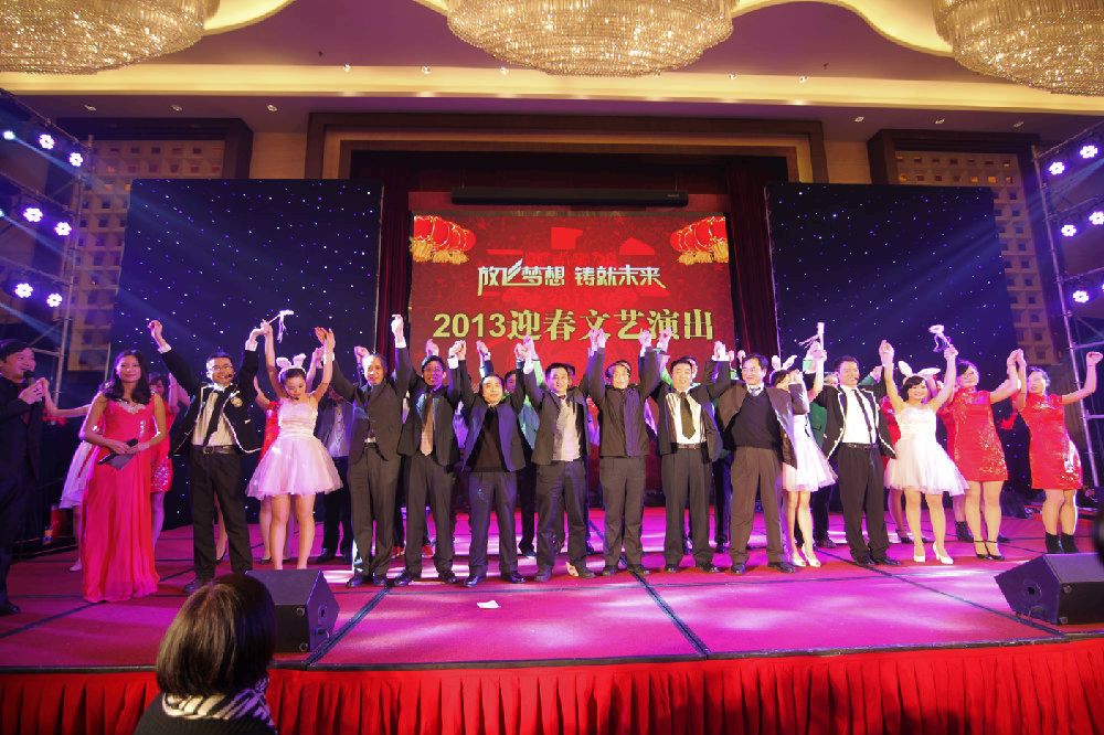 ??? 總結(jié)表彰大會結(jié)束后,一臺異彩紛呈的迎春文藝演出拉開了帷幕。喜氣熱鬧的《東方鼓韻》,寓意著新一年的奮進(jìn)與收獲;頗具詼諧意味的舞蹈《江南STYLE》,引得現(xiàn)場爆發(fā)出陣陣掌聲和笑聲;三曲經(jīng)典老歌匯成的情歌串燒,則喚起了現(xiàn)場觀眾對經(jīng)典的美好回憶。文藝演出在《新年快樂》的歌聲里落幕。