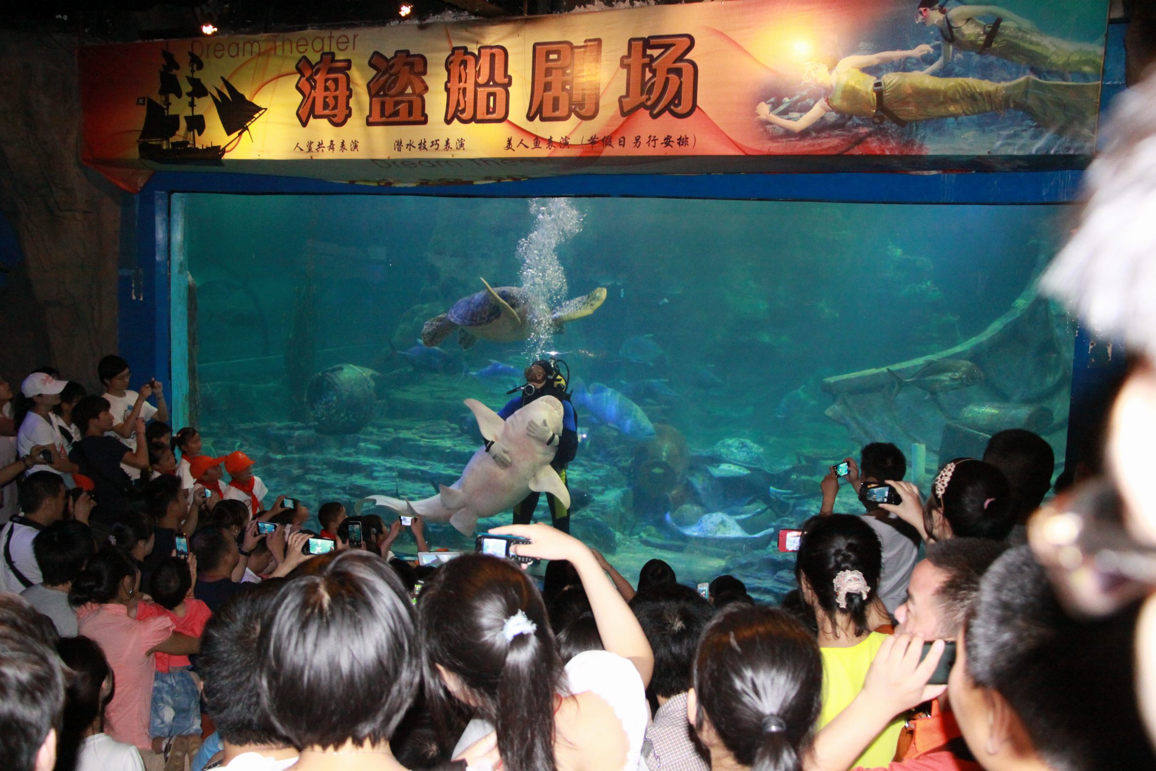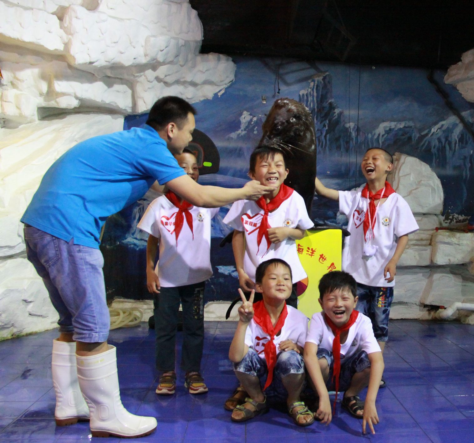 ??? 經(jīng)過短暫的休整,大家乘車來到東湖海洋世界進(jìn)行參觀。剛一進(jìn)館,孩子們就被一片神秘的海底世界所吸引了,他們趴在玻璃上欣賞著自己從沒見過的海洋動物,和喜歡的動物合影,穿過海底隧道時,時而出現(xiàn)的海洋動物都能讓他們發(fā)出一陣陣的驚嘆。美人魚表演和海豹表演更讓孩子們開心不已,他們不停的拍手鼓掌,并輪流和可愛的海豹合影。