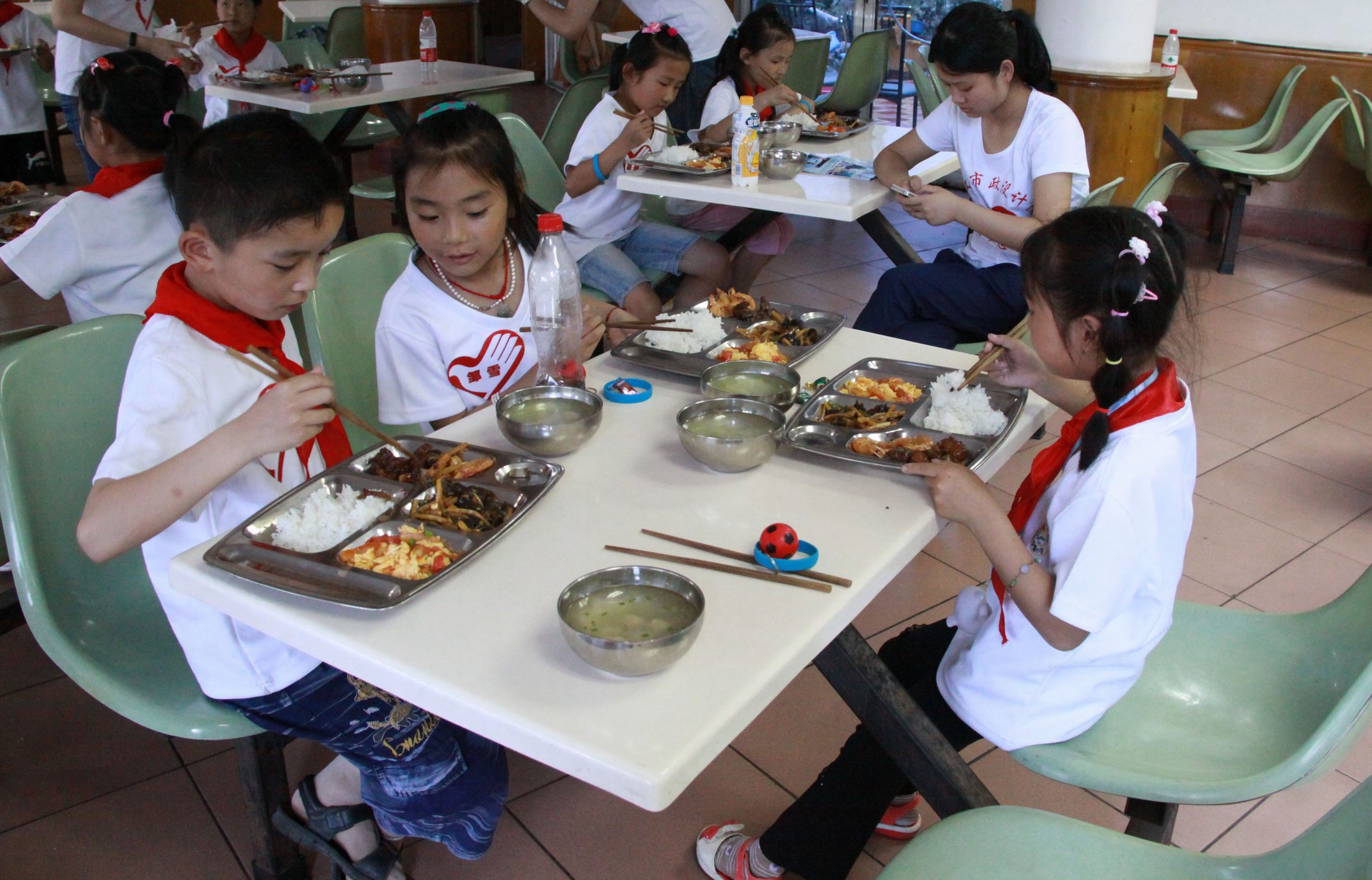 ??? 結(jié)束了一天的行程,志愿者與孩子們回到公司吃晚飯,孩子們有秩序的排隊領(lǐng)取晚餐,吃的干干凈凈。這時,志愿者們端出了準(zhǔn)備好的蛋糕,為這群7-9歲的孩子們過一個集體生日,大家唱著生日歌,一起吹滅了蠟燭。志愿者們將蛋糕分發(fā)給每一個孩子,他們吃的津津有味。