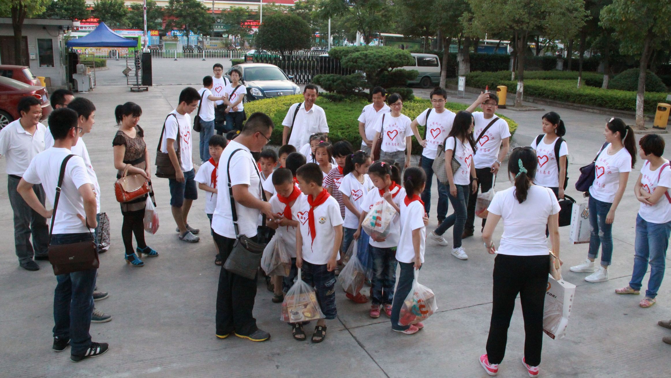 ??? 晚餐結(jié)束后,志愿者們與孩子們手拉手走出公司大門。志愿者隊長向李集小學(xué)領(lǐng)導(dǎo)贈送了文體用品,隊員們也為孩子們送上早已準(zhǔn)備好的食品及小禮物,并送他們上車。告別的瞬間,隊員們向車上的孩子們揮手告別,目送車輛遠(yuǎn)去,車上的孩子們也揮動著自己的小手,向公司志愿者們致意,為這次充實(shí)而難忘的活動畫上了圓滿的句號。