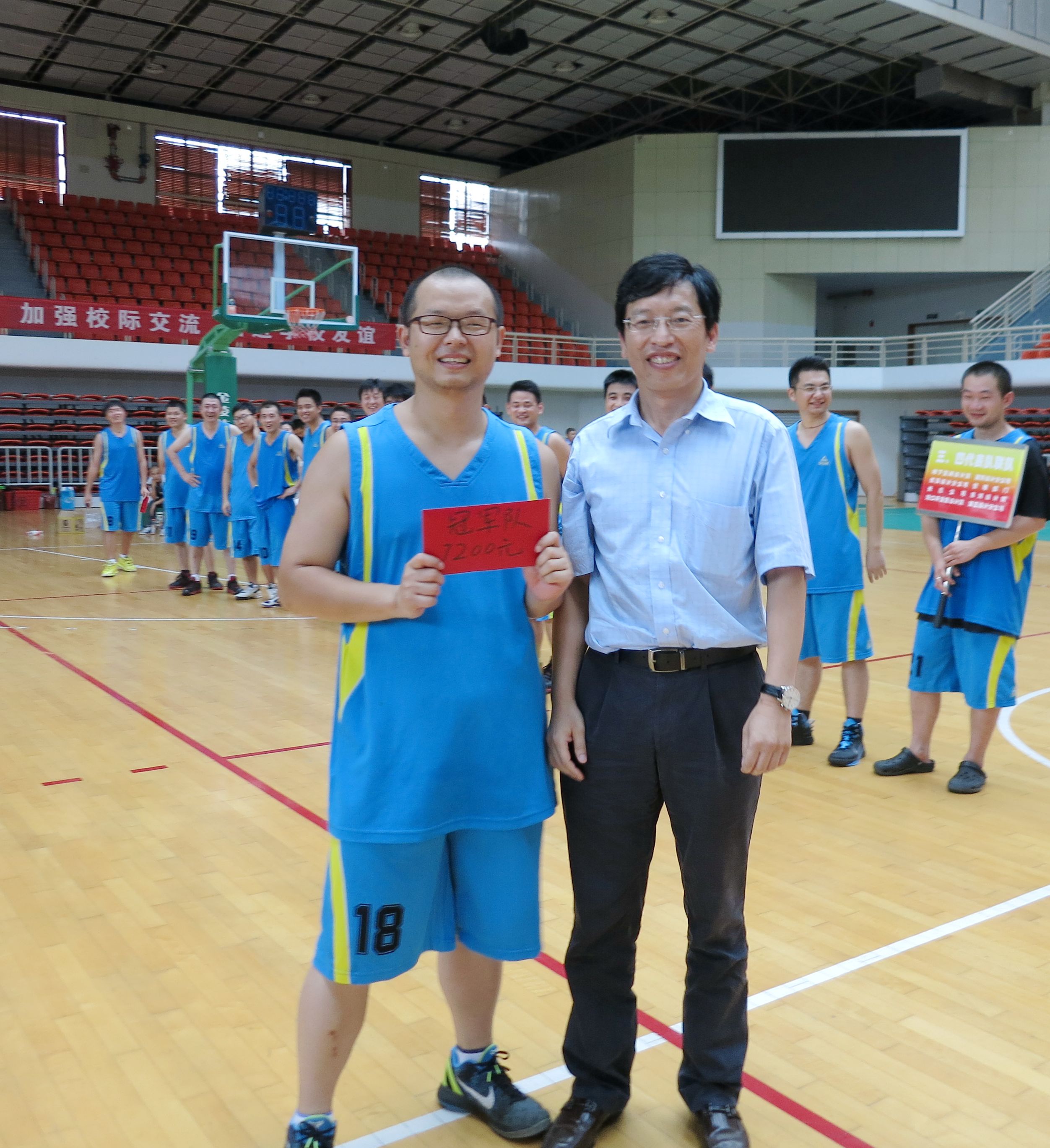 ??? 來自公司的八個分工會經(jīng)過抽簽,組成了兩支隊伍參加比賽,由于雙方實力相當(dāng),這場比賽在賽前就被認(rèn)為是一場勢均力敵的比賽。但是,比賽開始后,一個人的出現(xiàn)就迅速打破了場上的均衡,他就是來自藍隊的王龍。他的突破和快攻頻頻得手,很快便為藍隊確立了領(lǐng)先優(yōu)勢。相比于藍隊的個人表演,白隊依靠的則是團隊配合,在克服了開賽之初球隊磨合不夠的困難后,白隊漸漸找到比賽的感覺,打出了多次漂亮的團隊配合,緊緊咬住比分。然而,第三節(jié)將近五分鐘的時間未能得分,還是讓他們?nèi)鄙仝s超比分后勁。隨著裁判的一聲哨響,比賽宣告結(jié)束,最終的比分定格在69:55,藍隊以14分的優(yōu)勢獲得了勝利,王龍更是一人獨得35分,榮膺了本場比賽的得分王。