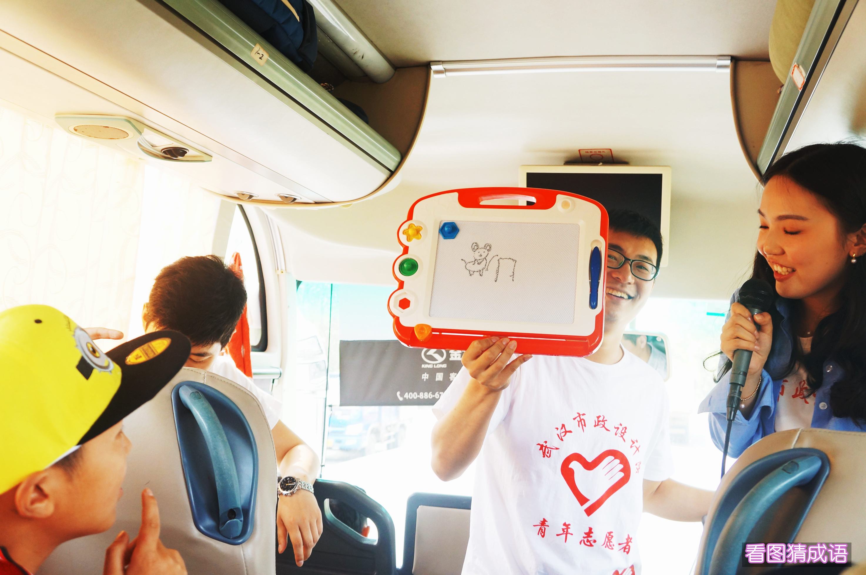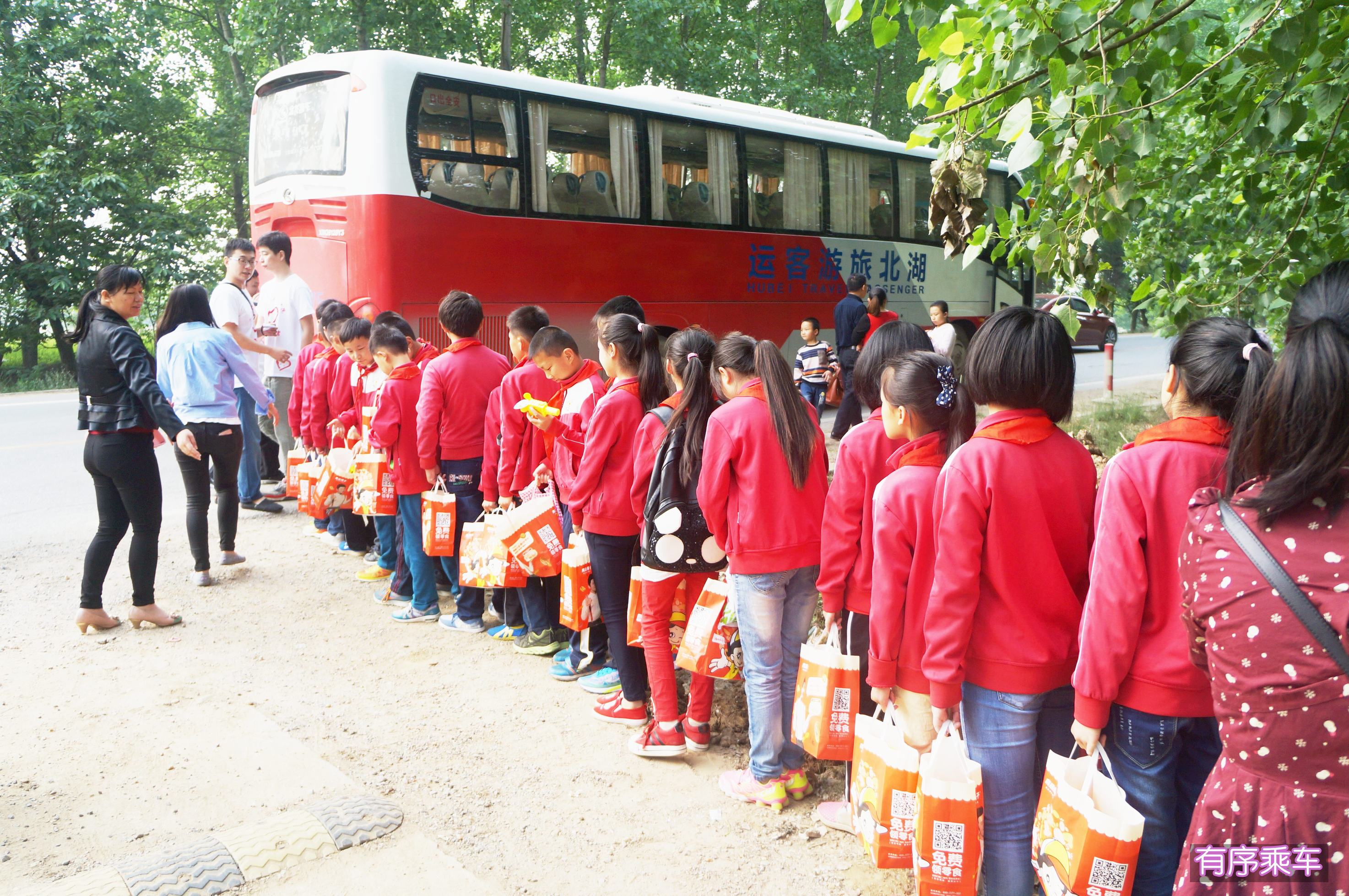 ??? 早上6時許,6名青年志愿者便迎著朝陽踏上了前往李集小學的客車,孩子們也按照約定的時間早早的在路邊等候。在前往武漢的路途中,志愿者們?yōu)楹⒆觽儼l(fā)放了精心準備的食物和小食品,帶領(lǐng)他們做游戲,車廂內(nèi)洋溢著歡樂的氣氛。