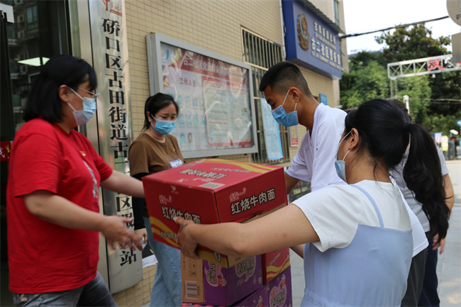 疫情無(wú)情人有情。2021年8月6日下午,公司黨委副書記、紀(jì)委書記談逢陽(yáng)代表公司向?qū)谙鲁恋墓哦鐓^(qū)捐贈(zèng)了防疫物資以及生活用品,并詳細(xì)詢問(wèn)了社區(qū)防控需求情況